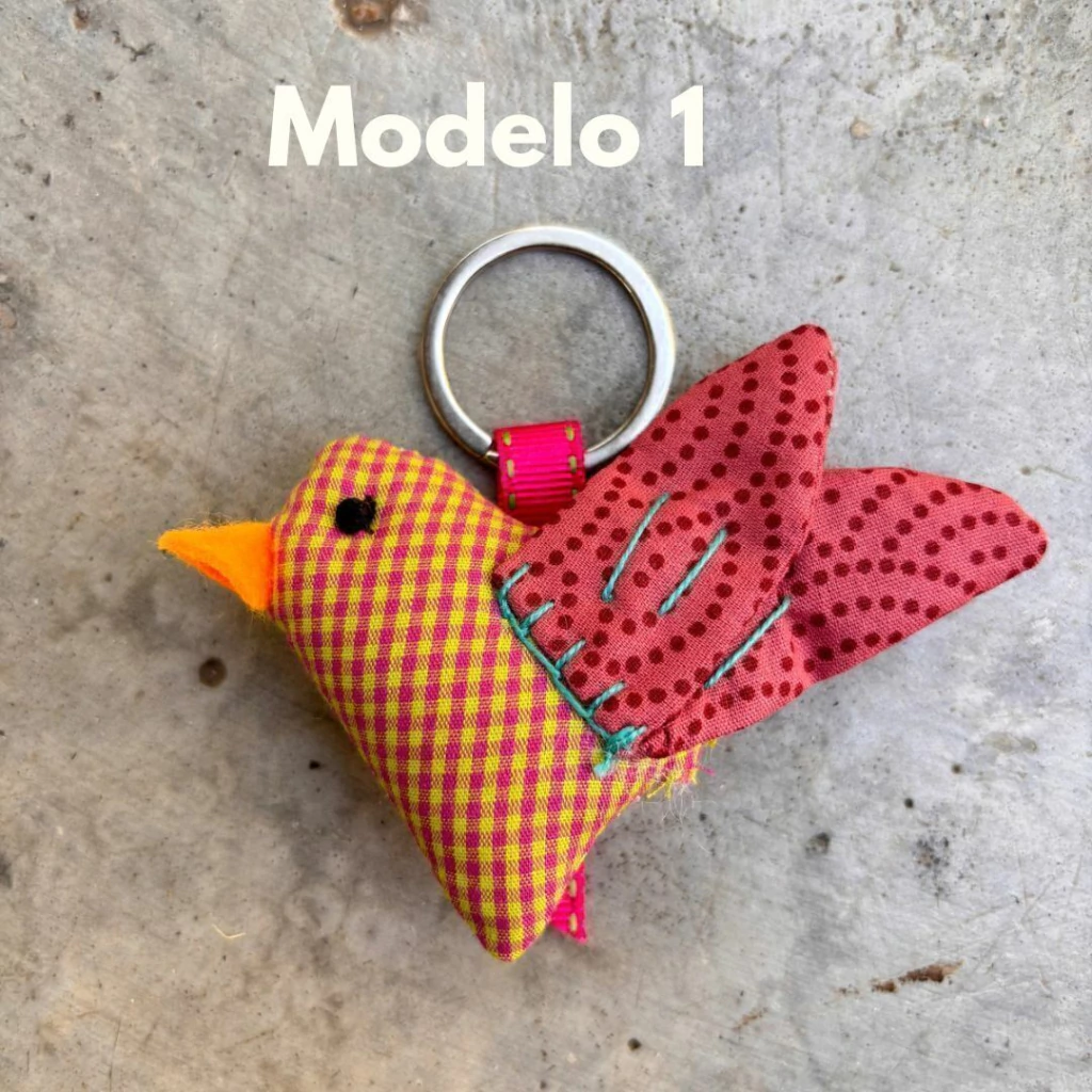 Keychain with little bird in fabric, body size 8cm x 5 cm
