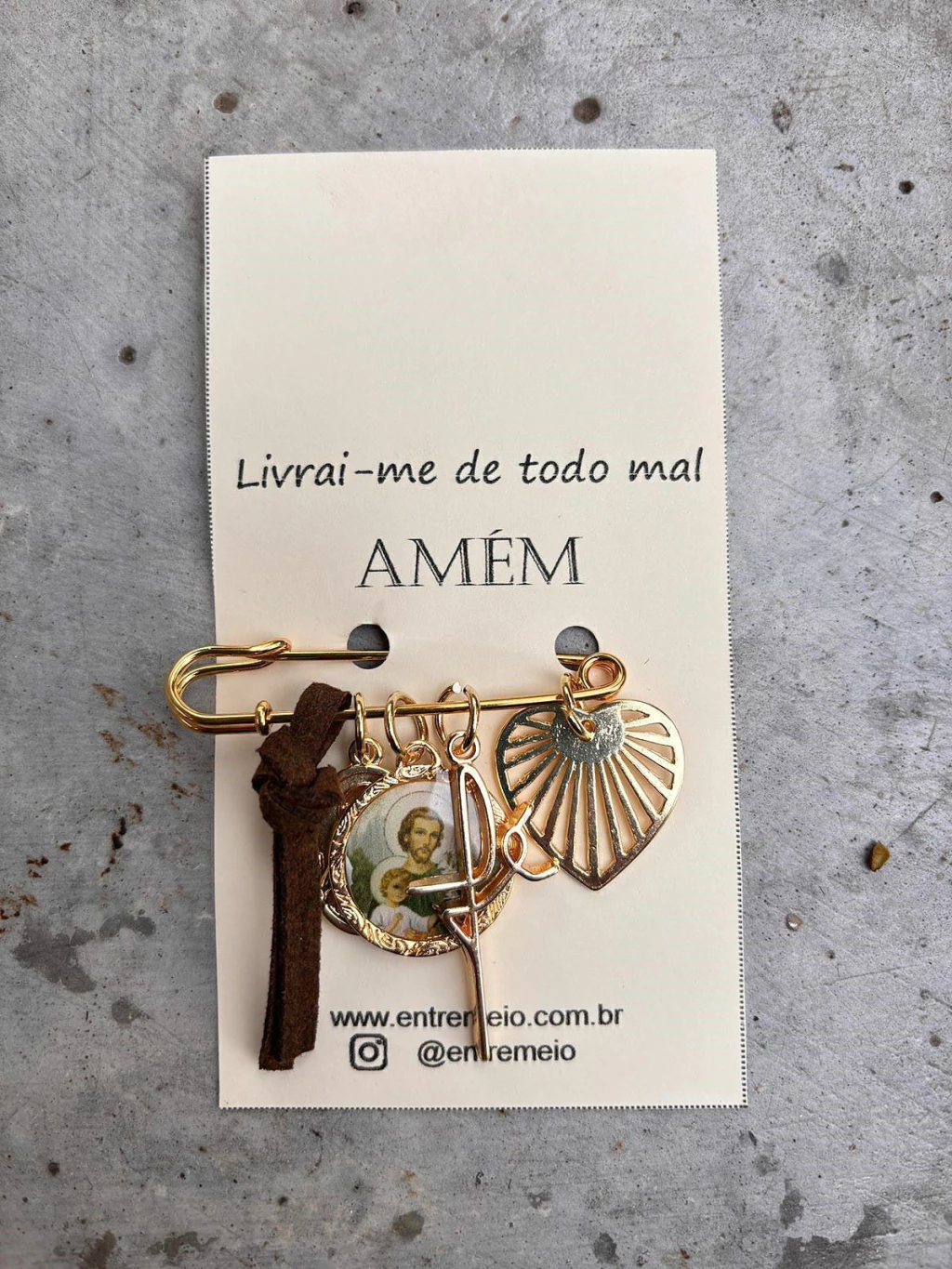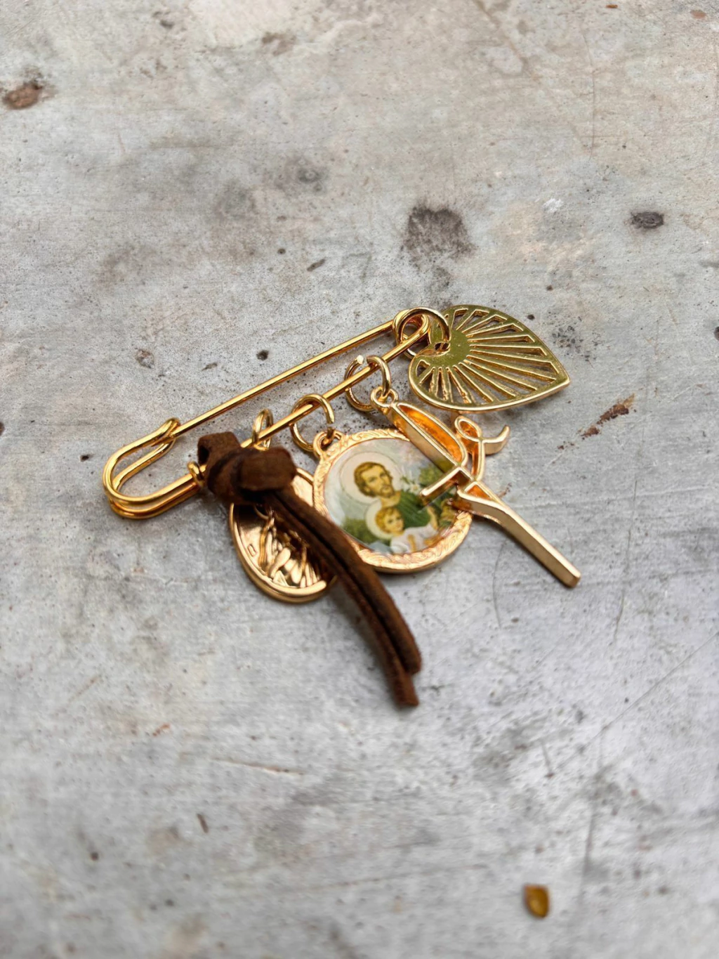 6 cm pin containing the pendants : Love, Faith, St. Joseph and Virgin Mary