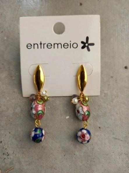 Brinco banhado a ouro com clozonê e cristais tchecos. Medidas : 4,8 cm comprimento. Ref 10105023.