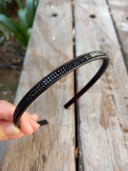 Tiara com pequenos strass plásticos em preto. Possui dentes internos, somente na cor preta