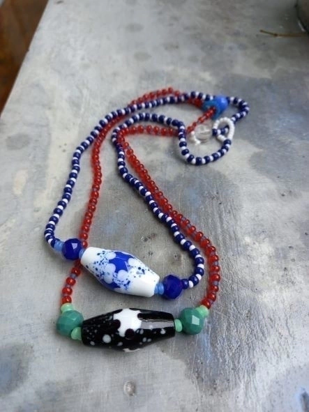 Colar em murano e miçangas. Medida : 43 cm . Ref 10203620